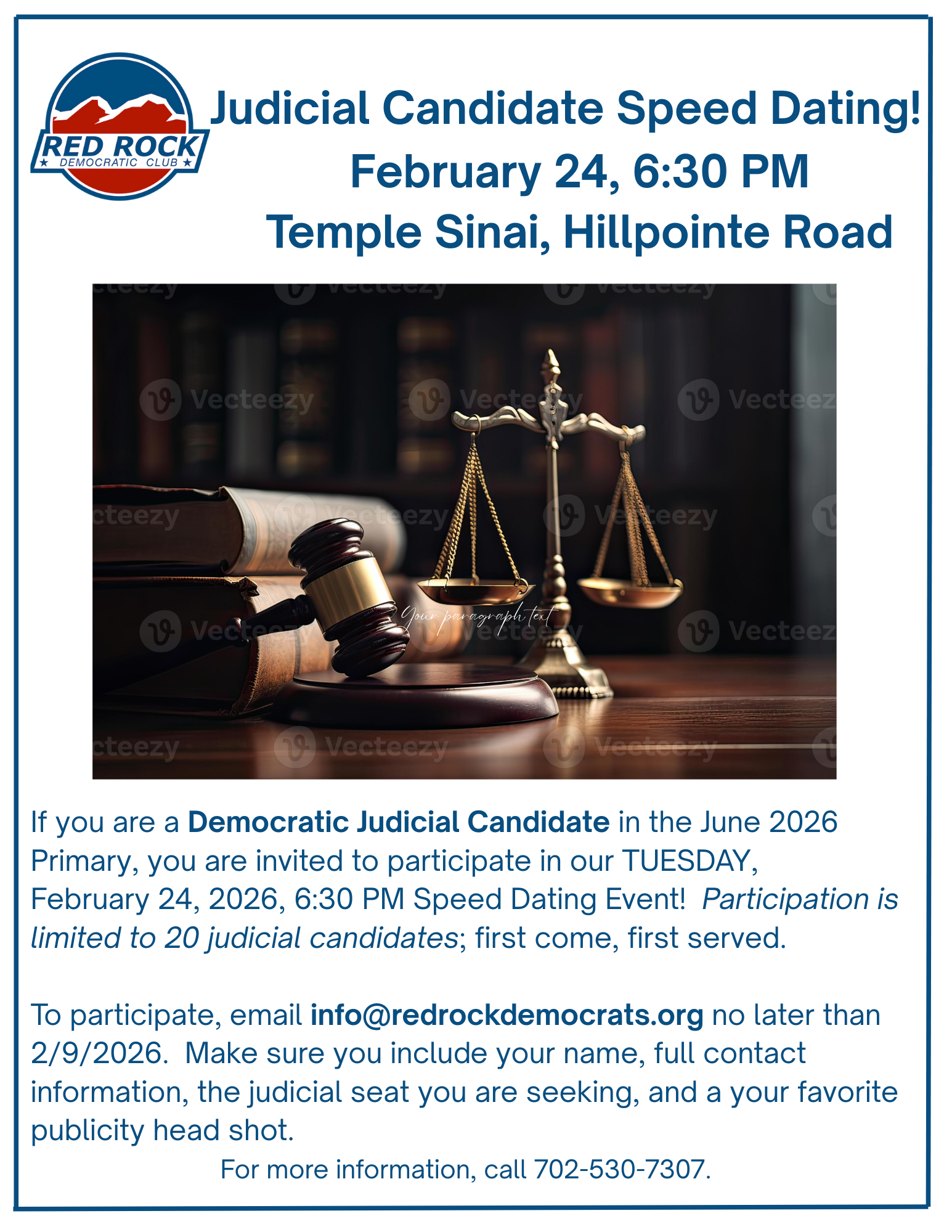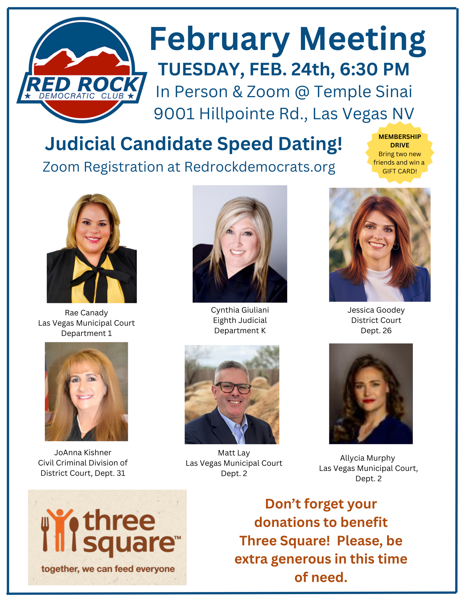 The Red Rock Democratic Club is a private political club. Events are open to paid members and sponsored guests by invitation only. The members of our club cordially invite you, A REGISTERED DEMOCRAT, to attend our monthly meetings. Featured speakers include Democratic elected officials, Democratic candidates, and prominent experts on public policy issues.